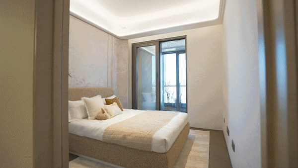 不仅延伸使用面积,更打开广角视野,躺在床上也能欣赏城市天际线和小区美景。