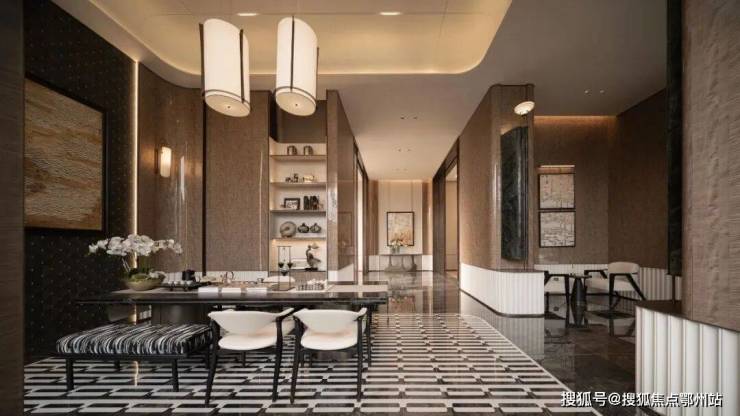 但凡看过棠悦芳华轩的朋友,会注意到项目的 入户单元门、电梯公区等都藏着很多奢雅的细节,诸如各类岩板、石材、铝板等高浓度运用,瞬间提升了空间的档次。