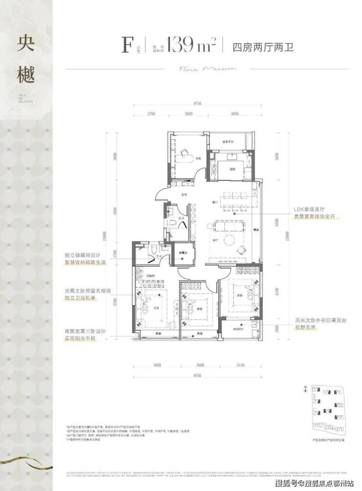 建面约139方四房两卫户型