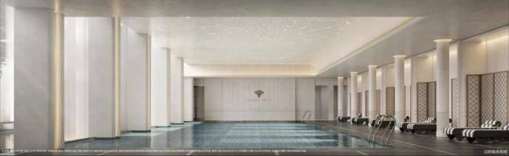 - 2000㎡下沉式会所,包含星空顶恒温泳池、3D室内高尔夫、私宴厅及健身房。