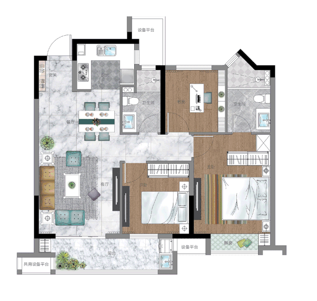 ● 整款户型,更关注家庭成员之间的互动,就像营造出一个宽敞的“生活中心”。贴心的双卫浴设计,摆脱一家人早上排队上厕所的尴尬,卫生又方便。