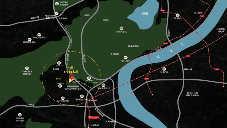 ①之江板块龙坞茶镇的核心区,杭州首屈一指的豪宅区,国家4A级景区,高尔夫球场、森林公园环绕。
