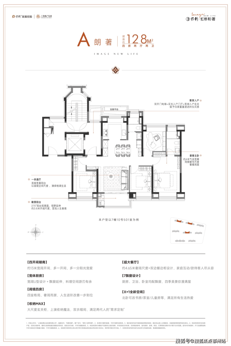 ◎真四开间朝南:2024年上海125-130㎡新房仅约9% 做到真四开间朝南,地铁口4房更少(数据来源网络)。该户型南向总面宽约13米,远超同面积段常见的 10 米面宽,采光视野佳。