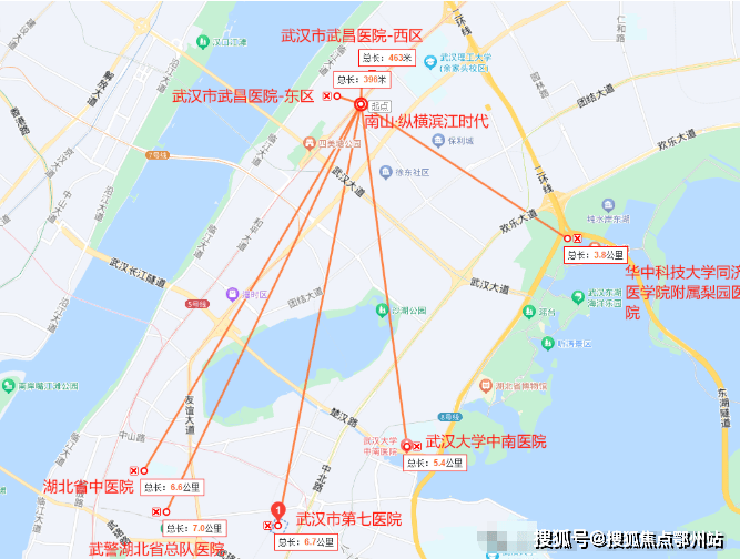 ◎ 直线距离约5.4KM,武汉大学中南医院
