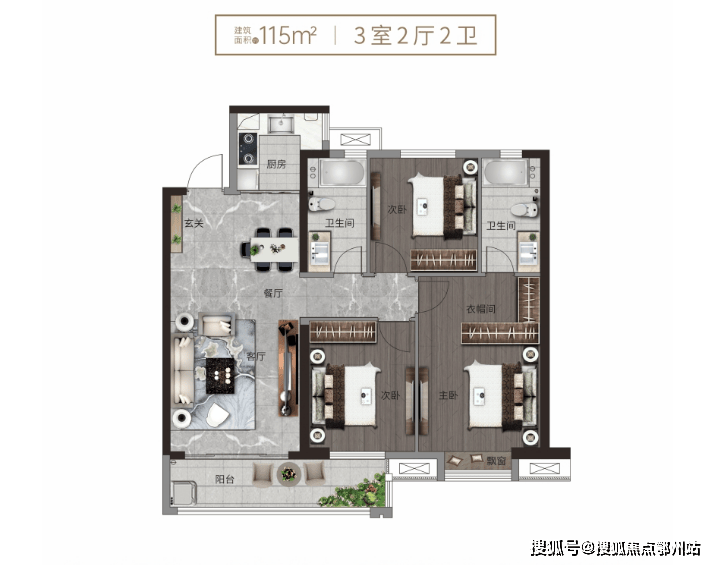 【面积】:115㎡-135㎡(3房2厅2卫)