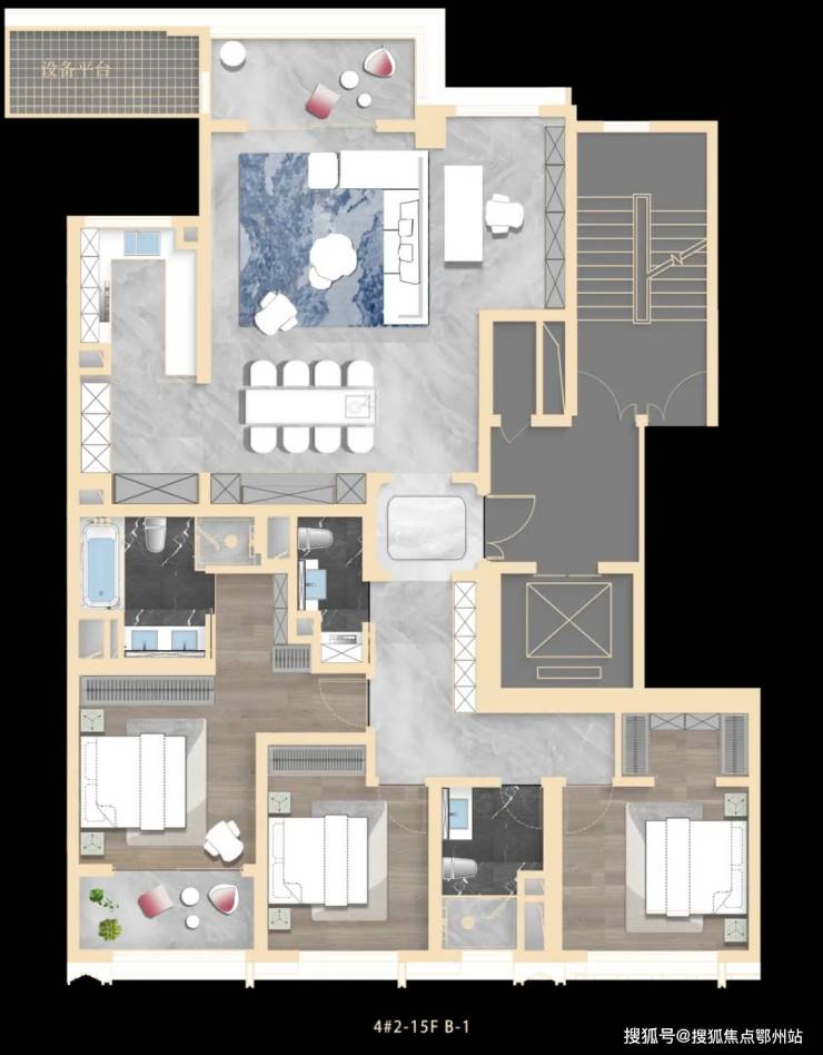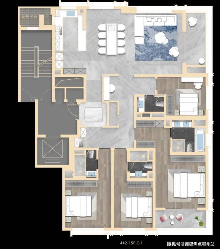 4#楼王总高16层,均为大户型产品,圈层更纯净!主力建面约193-302㎡,户型图如下: