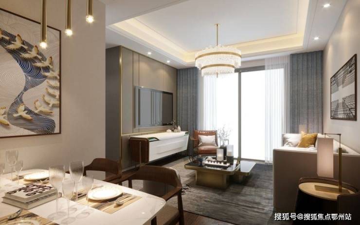 从产品形态上看,建邦国宸府打造的是金山新城极为稀缺的墅居产品,由高层+叠墅组成,建筑风格为现代中式滨海风格。其透露出的中式意境和构图美学我们可以从景观绿化一窥端倪: