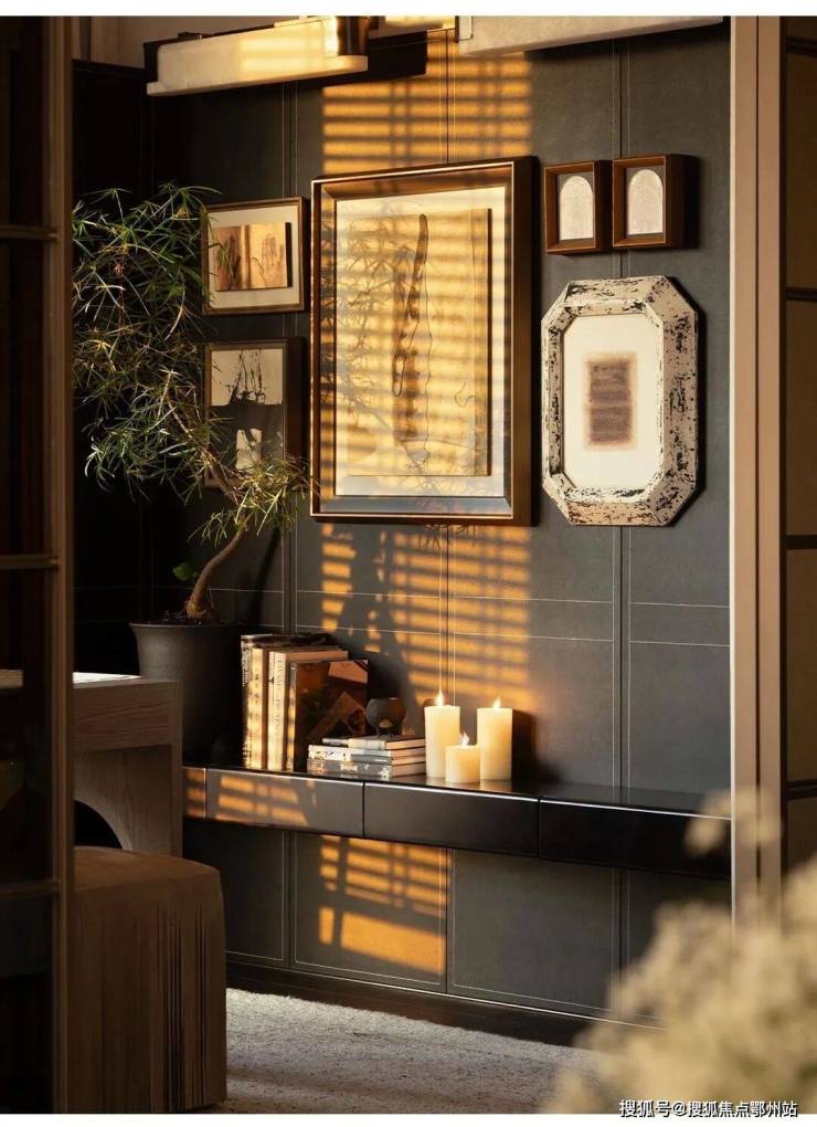 建面约 322㎡东边套,以运河石拱、坝子桥檐脊、河畔银杏为灵感密码。推开双开装甲门,「方圆有度」玄关便以大漆工艺装饰画与「花开富贵」艺术玻璃装置,勾勒出东方意境的雅致轮廓。
