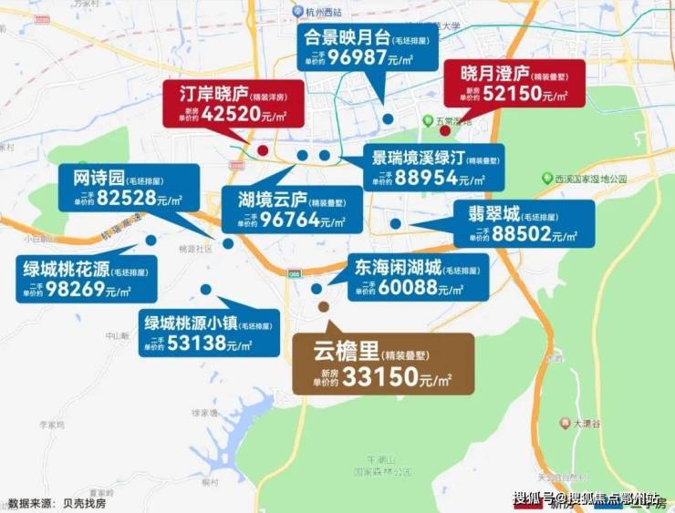 目前,城西叠墅二级市场在售存量有限,身价臻贵。未科二手叠墅以湖境云庐、境溪绿汀、天空之城为代表,真实成交价多超过8万元/㎡。