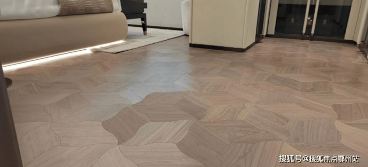 主卧地面,采用市面极少见到的柳叶拼接,带来了独一无二的地面效果。