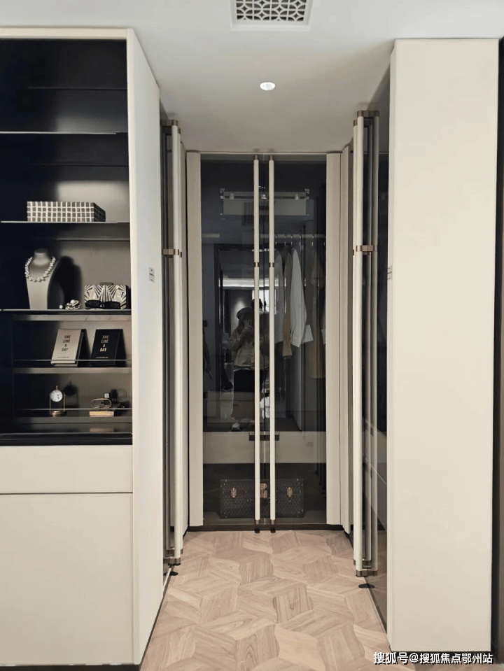 99㎡样板间中,整排到顶玄关柜均为交付标准且为皮质缝线包裹!这样的收纳空间,谁看了能不心动?