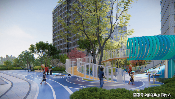 在中央景观的两侧,有专为各个年龄段业主设置的 健身区域、亲子活动区,