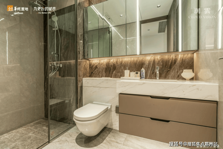 更值得一提的是, 整面墙的镜柜 ,以及马桶上方延续到台盆的 一体化置物空间 ,提供了更多的置物功能,同时也让卫生间更加整洁、易于打理。