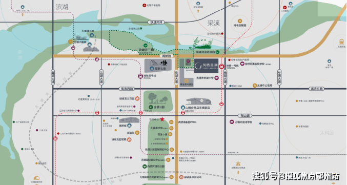 西衔金城湾公园、蠡湖大桥公园,与梁塘河湿地公园连成城市生态绿轴,自然宜居。