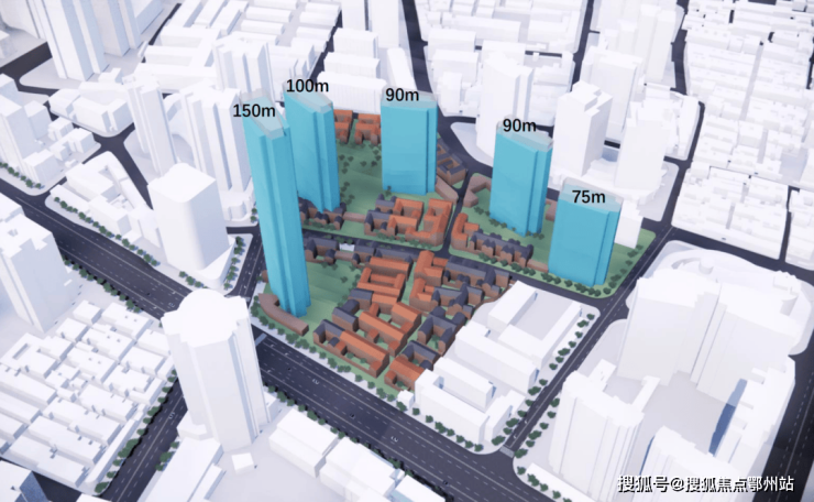 北区的四幢75-100米的高层住宅,层数为20F、24F和27F。南区仅一幢地标150米的超高层住宅,设计层数41F。