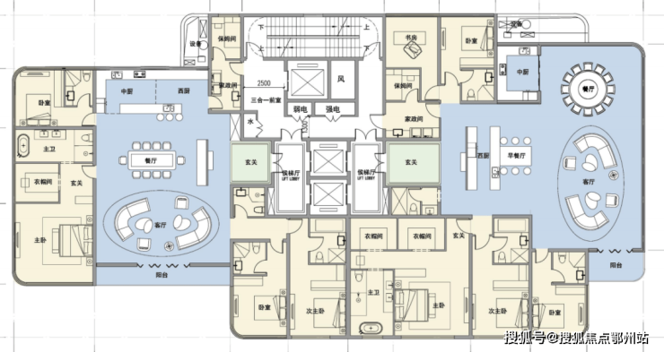 据悉,项目每层层高约3.6米,高层暂定总套数约258套,均为3梯2户(两部客梯+一部消防后勤电梯)+独立前室的豪宅配置。