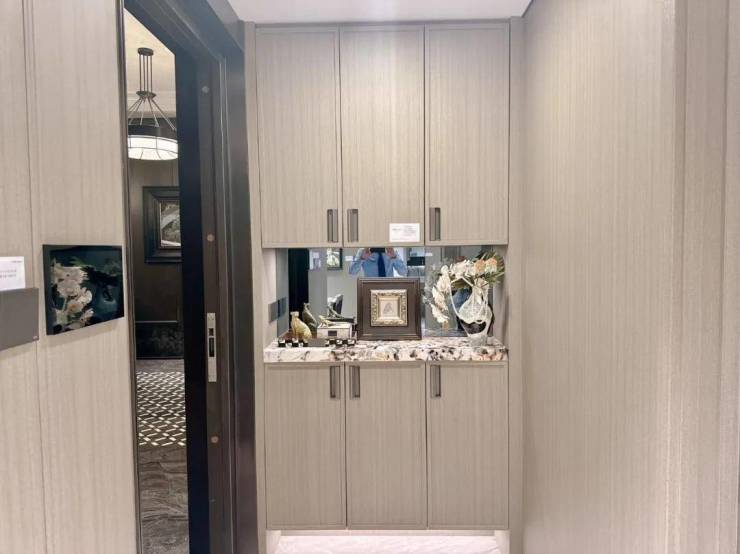 玄关柜台面,选用了 雪山飞狐奢石