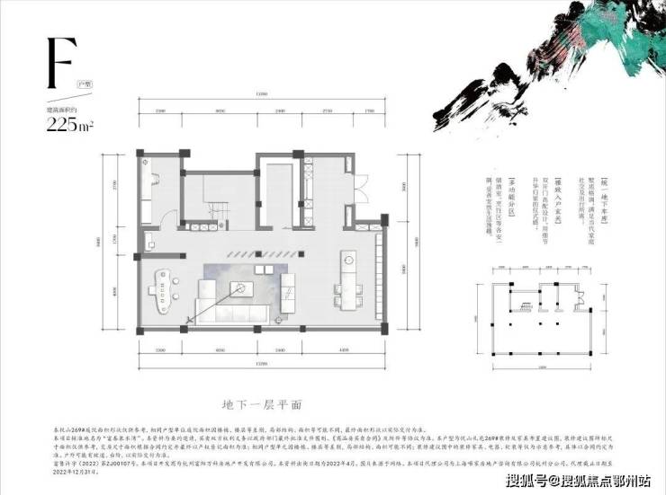 【F户型】深邃摩登精装风格,揉合当下设计思潮与人居尺度墅院。建筑面积约225㎡ 、4厅4卧4卫。
