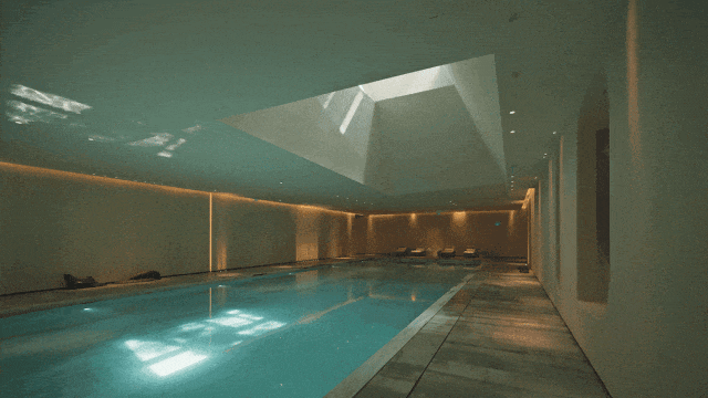突破风貌别墅公区狭小的限制,越秀外滩樾做了一个地上地下合计建面约2500㎡会所及泛会所空间,提供了会客、私宴、泳池、健身等多维休闲社交功能。