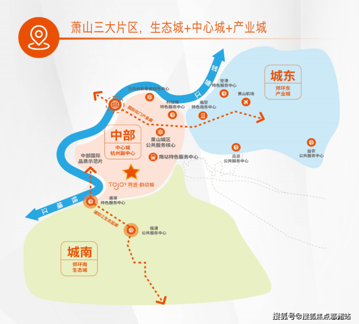 政府将围绕东整、西优、南启、北建、中塑去打造全面、均衡各板块之间协同发展的大杭州。同时南部新城也是杭州十字方针南启发展规划中的重点发展板块。定位为杭州南部城市新窗口。