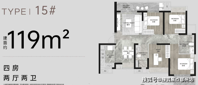 建面约119㎡改善王炸级四房,非常适合考虑内环滨江但注重性价比的家庭。