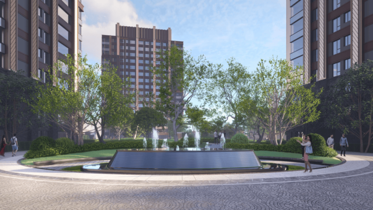 景观方面,项目规划了 三大景观轴线+入户仪式轴线。