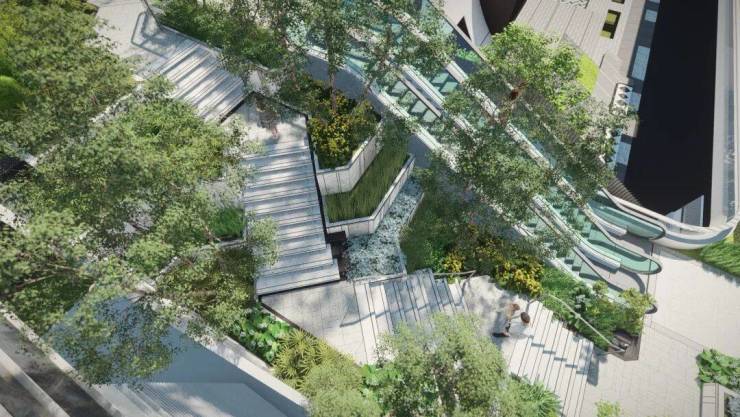打造了三重立体绿化系统 ,设计了空中约6100㎡高线公园,再配以约4500㎡商业森感公园。