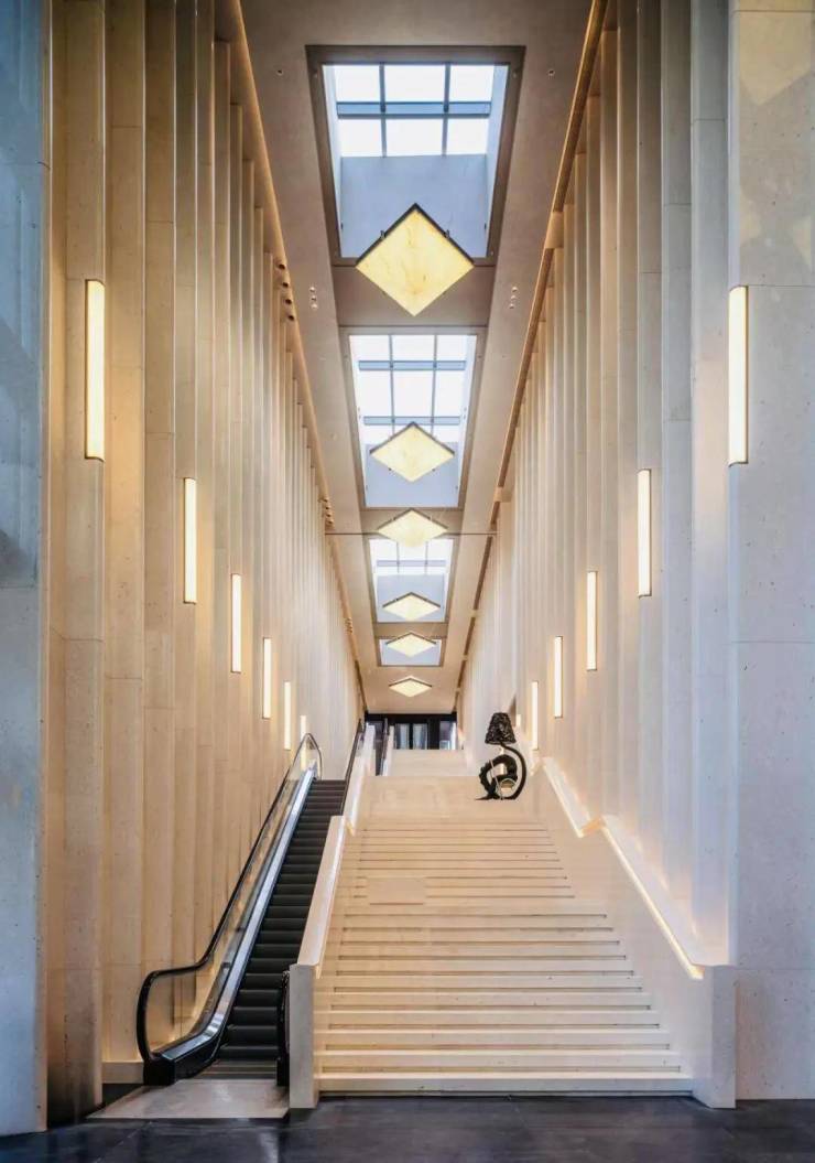 还是进入充满海派风情的旋转门后,约14.5米大堂挑空下,那直击灵魂的 超长象牙白色长阶 ,交织在光影下,流露着温润与悠扬。