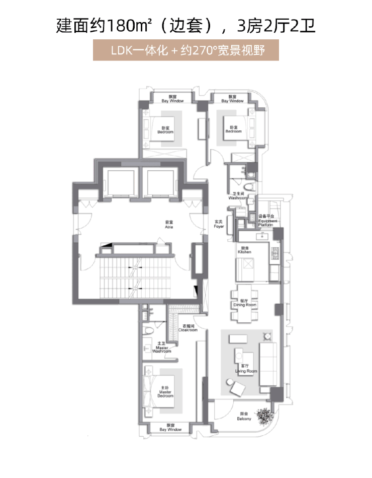 建面约180㎡宽奢大三房