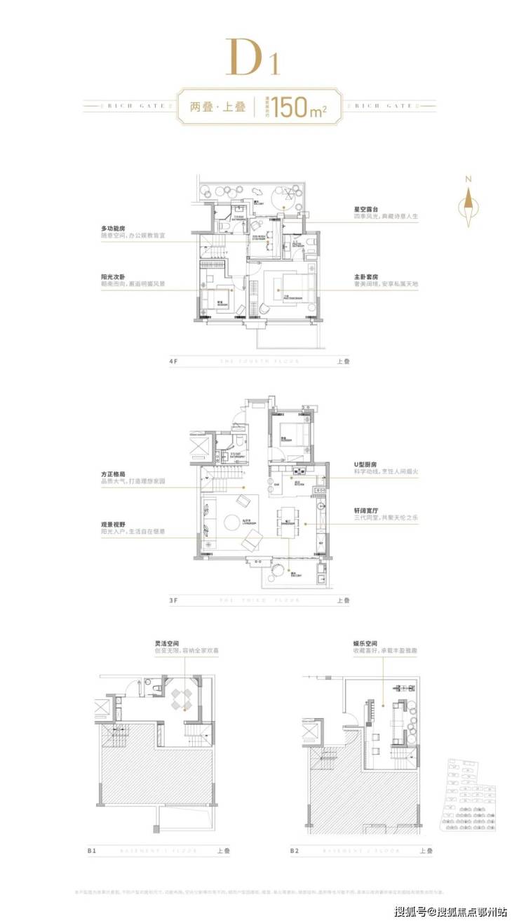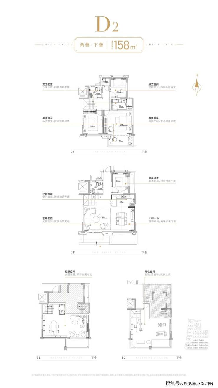 上下叠均配备双层地下室,下叠享南花园 + 北入户双庭院,上叠拥北露台 + 坡屋顶星空阁楼,灵动空间媲美联排。