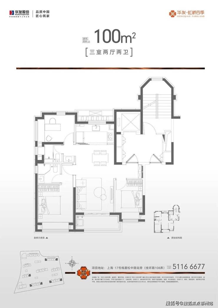 大虹桥+科创芯+17号线嘉松中路站「华发虹桥四季」三期推出84套建面约98-100㎡3房,过会均价58321元/㎡!