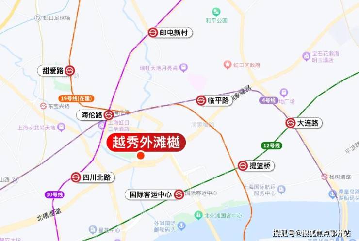 越秀外滩樾傲踞虹口北外滩核心区,与外滩商圈直线距离仅约1公里,周边北外滩、四川北路、瑞虹新城三大商圈环伺,尽享陆家嘴、外滩、北外滩“黄金三角”顶级资源。