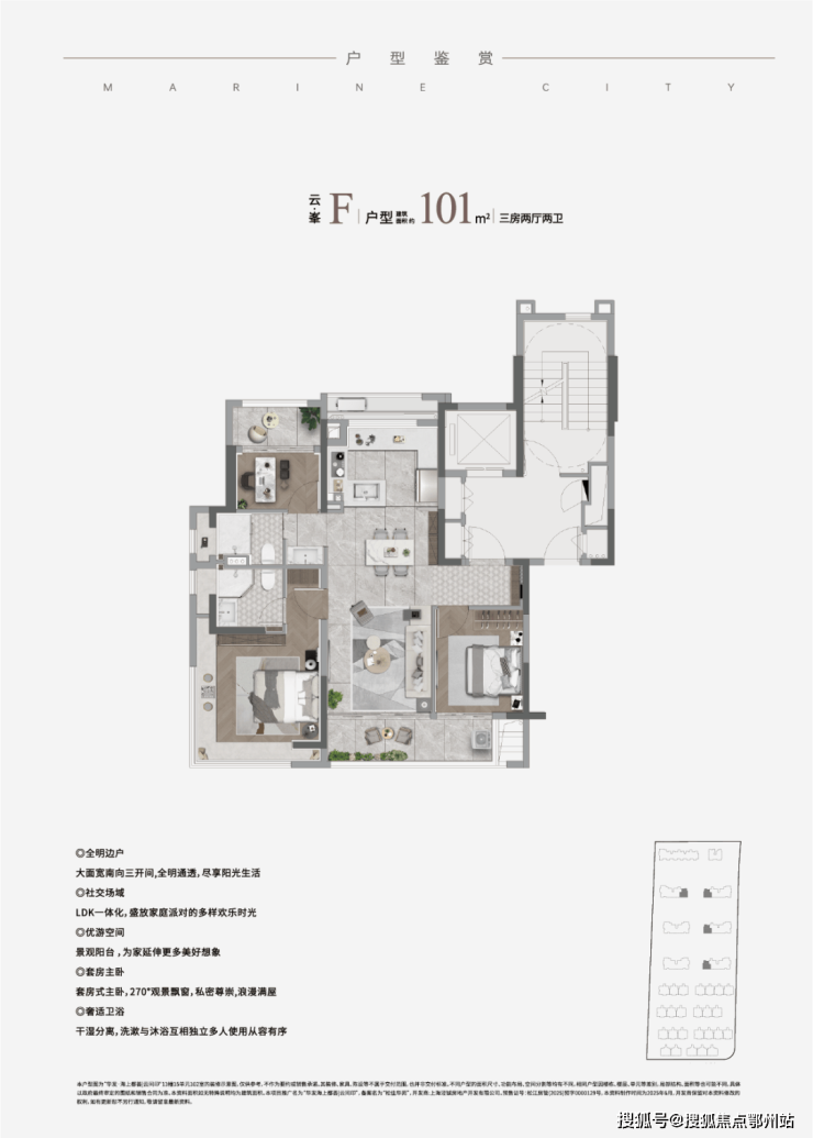 高层 全能三房建面约91-101㎡, 全屋多阳台+多飘窗组合,扩容空间可实现自定义创意打造,增加室内采光面,让生活更通透!