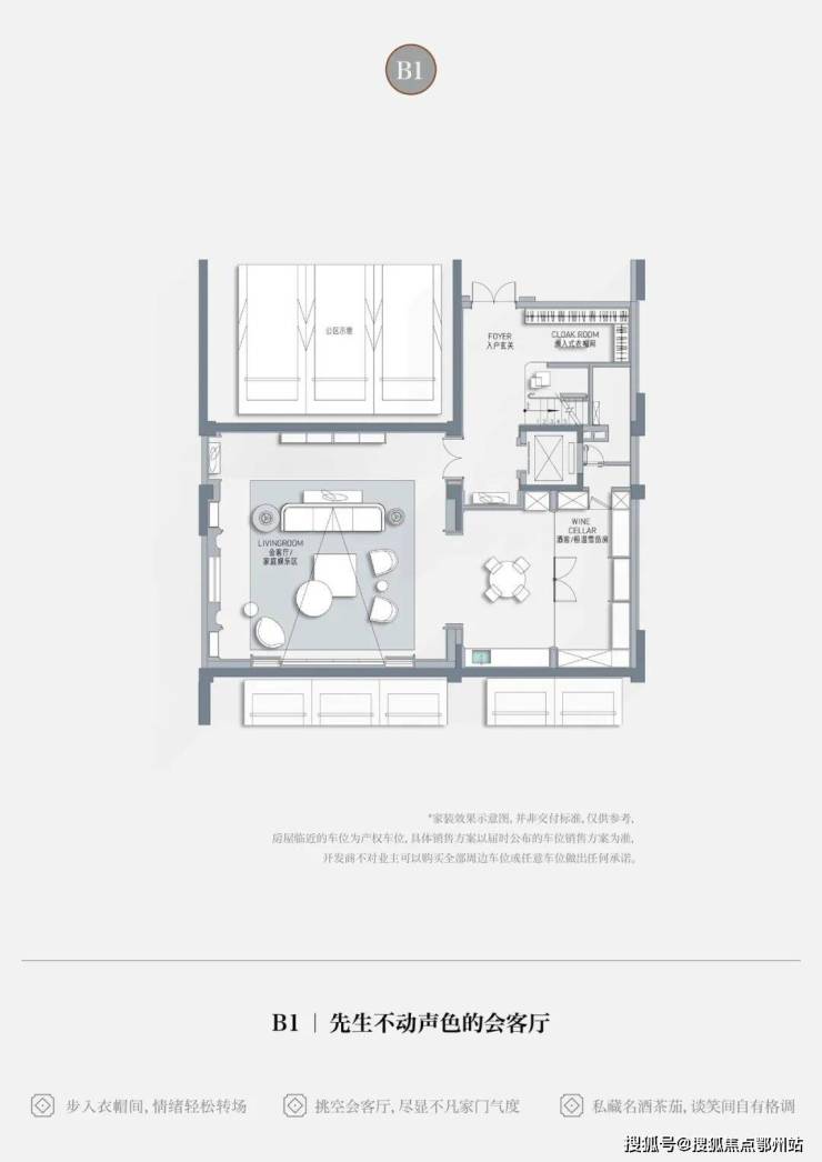 • 从容抵达步入地下会客厅,转角衣帽间换一身便服,轻松切换身份情绪