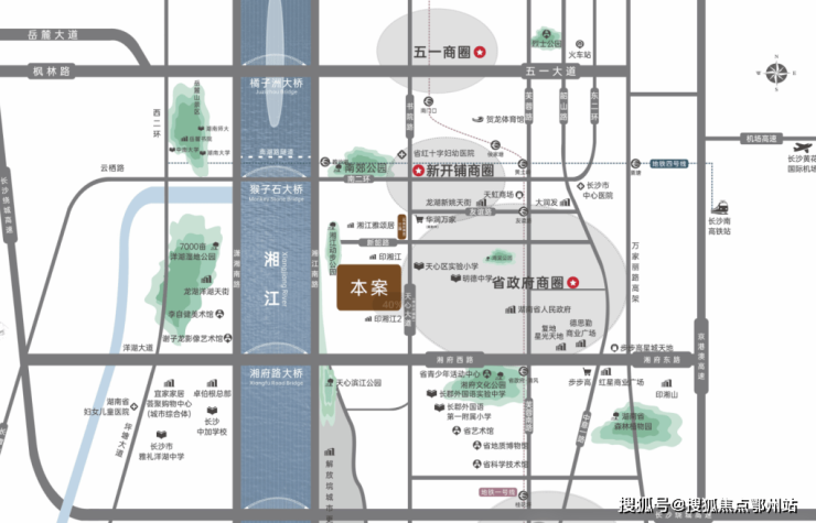 项目处于省政府核心区域,南湖新城与南部融城片区交汇处,周边环绕着省政府、天心区政府、省交通厅等23家相关政府机构,是长沙乃至湖南省的绝对政治中心。
