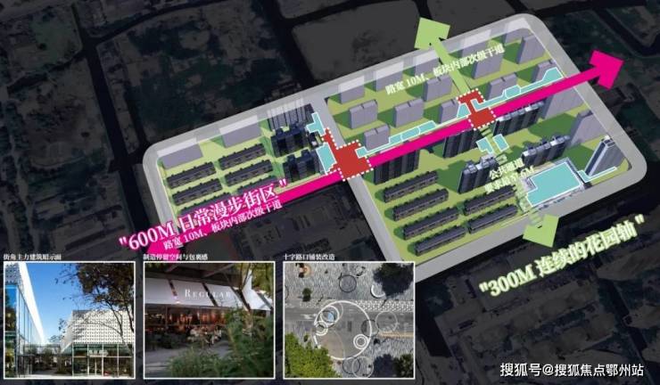 社区内约600米“日常漫步街区”与300米“连续花园轴”串联,真正实现“入则静谧,出则繁华”的完美生活体验。