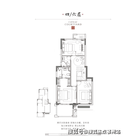 院居小高层105-143㎡:奢阔通透三、四房,以高标准打造,重构高层人居体验,具备更强居住价值。
