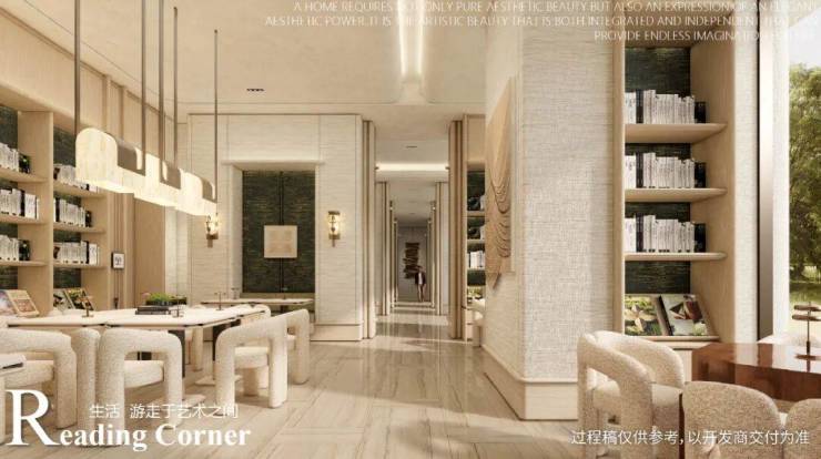 项目打造现代海派风格的外立面,线条简洁大气; 社区规划六重生活体验空间,从酒店式落客入口、镜面水庭到美学花园,旨在将高端酒店的奢享基因融入日常生活。