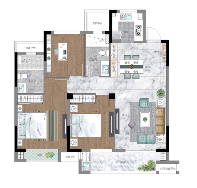 ● 整款户型,更关注家庭成员之间的互动,就像营造出一个宽敞的“生活中心”。贴心的双卫浴设计,摆脱一家人早上排队上厕所的尴尬,卫生又方便。