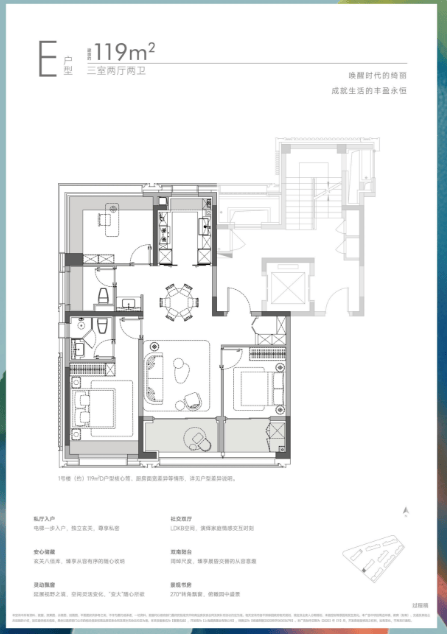 270°转角玻璃、双阳台、N+1灵动空间等设计,突破传统局限,赋予居者更自由丰盛的生活体验。
