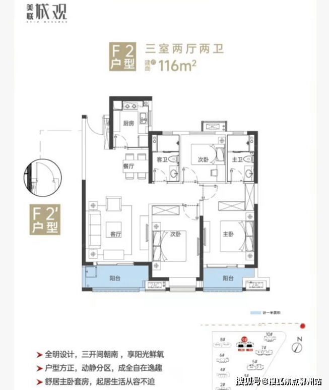 美联城观占地面积约6.8万方,总建面约35万方,容积率3.66,共2336户,机动车停车位2515个,包含10栋住宅和1所幼儿园。