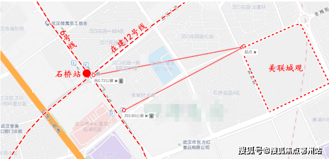 地铁与公交:美联城观距离地铁6号线和在建的地铁12号线石桥站直线距离约700米,距离6号线最近的出入口约600米,都在步行范围内。