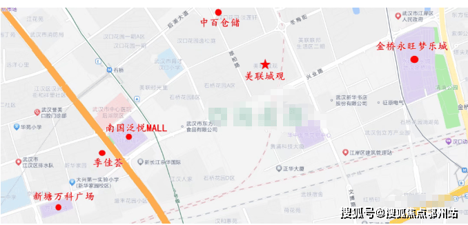 美联城观位于兴业路与翠柏路交汇处,楼市划分属于西后湖板块,行政划分属于江岸区,距离二环线直线距离约900多米,属于二至三环。