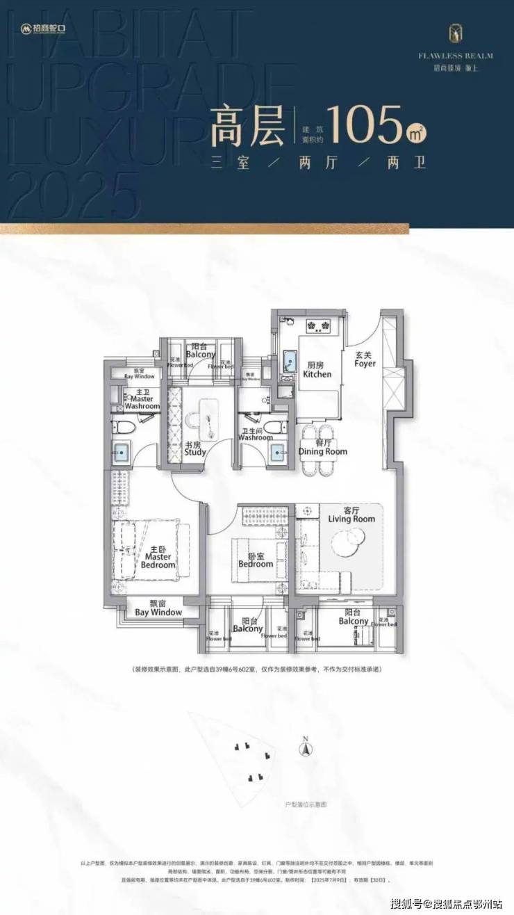 建面约105㎡3房,“三阳台”搭配花池的设计,直接性价比拉满,按照规定:三个阳台只算一半面积,花池不算面积,加上主卧+卫生间还带飘窗(主卧飘窗非承重结构),如此算下来,对购房者而言,日常可以实打实利用到的面积是远超市面上其他三房产品。