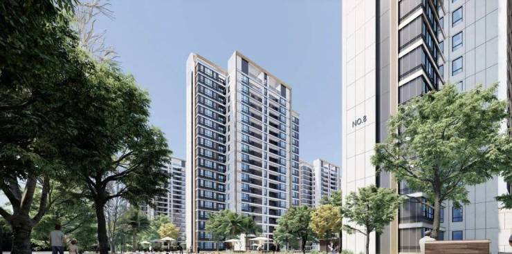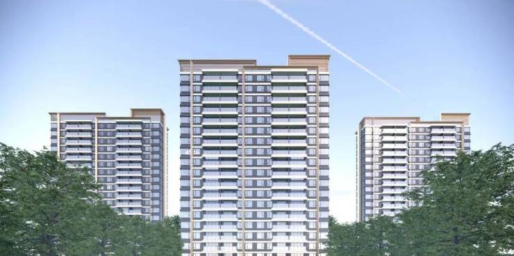 建筑上,先锋 审美流体建筑、超大玻璃幕墙和全画幅开窗视野 ,以及立面部分材质是铝板装饰。都为居住者带来了开阔的视野和舒适的生活体验。非对称构图和圆润的形式,为业主提供放松的情绪价值。
