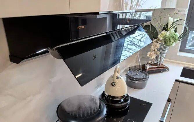 其中,项目采用侧吸式油烟机释放视觉空间,感应功能也让烹饪更加得心应手: