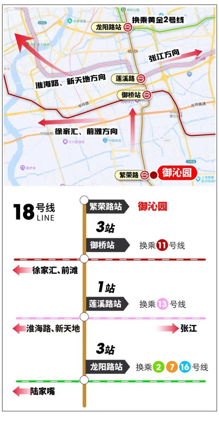 1.双轨交,紧邻18号线繁荣路站;东侧还有16号线;