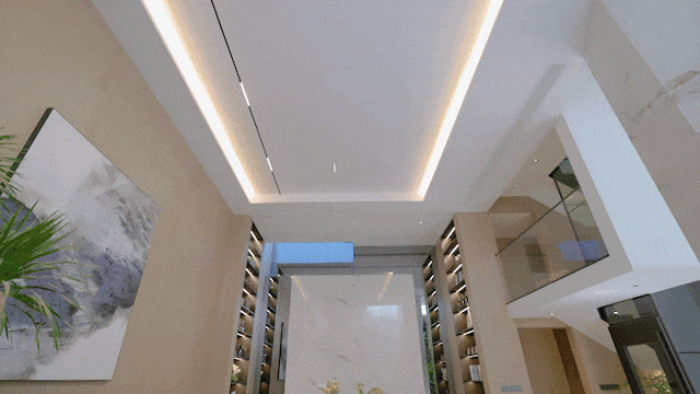 对于联排来说,地下室是充满惊喜的自由空间。这次我们看到的样板间的层高达到了约5.6米,您可以在此设置游戏区、健身区和酒吧区等等。天井墙面及楼梯下的绿植景观将自然气息引入室内。