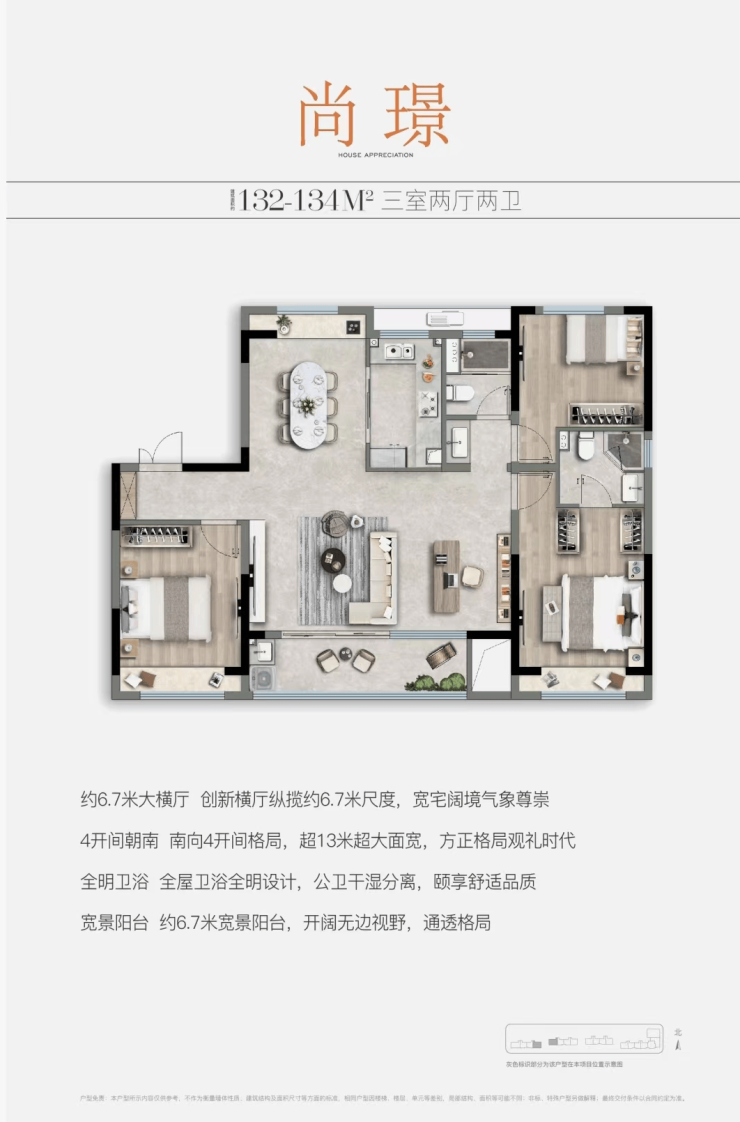 户型点评:大尺度南向四开间,不只带来视野提升,更契合当下生活对阳光、通风的更高诉求;宽度约6.7米的横厅是点睛之笔,可自主隔离一间功能房,居家办公室、健身房、电竞房随心改造,品质感直线拉升。