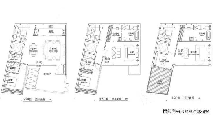 【越秀·外滩樾】项目将呈现48套低密风貌里弄住宅,建筑面积约238-338㎡户型。户型图过程稿如下(过程稿仅供参考,最终以实际为准)。